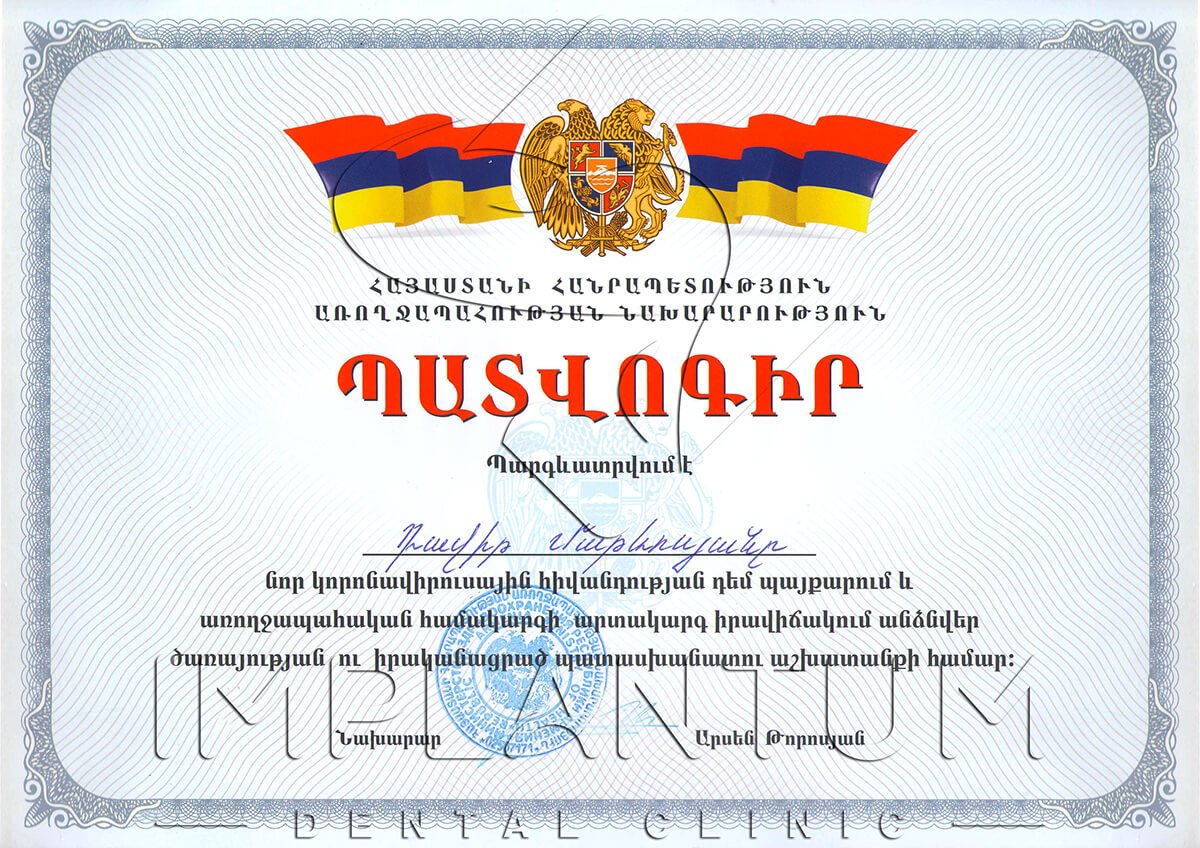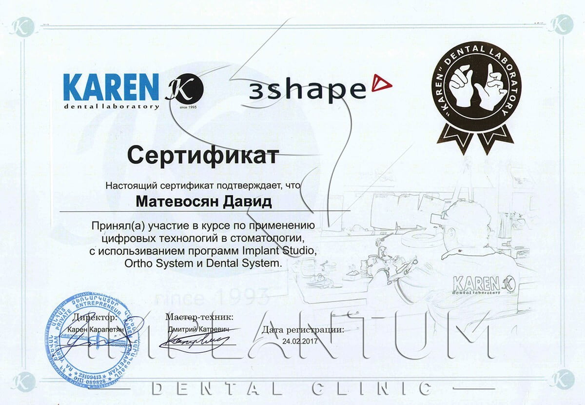 - 2004-2008 — Undergraduate Courses in Dentistry, Yerevan State Medical University